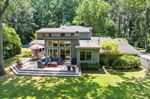 Private Estate Oasis with Pool, Pond & Pickleball Court - A Rare Mid-century Modern Retreat! Tucked away on 2.2 pristine, park-like acres, this beautiful 4-bedroom, 2.55-bath mid-century modern home is a private sanctuary 400 feet off the road, fully fenced and surrounded by lush greenery. Whether you're seeking serenity or the ultimate entertainment setting, this one-of-a-kind property delivers. Step through grand double doors into a dramatic two-story foyer, where light pours in and views of the scenic grounds are visible from nearly every window. The layout is open and airy, blending comfort and elegance throughout. A cozy sitting area with hardwood floors and a wood-burning fireplace invites quiet conversation, while the sun-drenched living room boasts soaring ceilings, double-stacked windows, built-in bookshelves, and gleaming hardwoods. The formal dining room is perfect for gatherings, complete with picture frame mouldings and expansive windows overlooking the serene yard. The heart of the home is the chef's dream eat-in kitchen, outfitted with Thermador appliances, full-height wood cabinetry, granite countertops, a large center island, walk-in pantry, and walls of windows that showcase the breathtaking backyard. Cozy up by the second fireplace and enjoy meals under the natural light of skylights. Just off the kitchen is a dedicated home office with built-in desks and storage, ideal for remote work. A mudroom with separate entry, main-floor laundry, and powder room complete the main living area. Also on the main level is the luxurious primary suite, featuring a walk-in closet, two additional closets, and a brand-new spa-like ensuite bath with a massive walk-in shower, dual-sink quartz vanity, and refined finishes. Upstairs, you'll find three spacious bedrooms and a full bath - perfect for family or guests. Downstairs, the unfinished basement offers ample storage and houses all energy-efficient electric systems, including heat-pump HVAC, dual-zone central air, heat-pump water heater, dual 200-amp service, central vacuum, and in-ground sprinklers. Recent upgrades include: Anderson windows (1st floor - 2 yrs), New primary bath (6 months), Roofing on some sections (6 months & 3-yrs), Cedar plank siding (2-5 yrs), Heat-pump hot water heater (2 yrs), deck (2-yrs), Pickleball court (1-yrs), Pool Heater (7-yrs), Pool filter (1-yr), Pool Loop-loc safety pool cover (1-yr), New electric to pool (6-months) and more. Step outside to your private backyard retreat, where a sprawling deck overlooks a tranquil pond surrounded by park-like lawn and mature landscaping. Enjoy friendly matches on your private pickleball court, or simply relax in nature's embrace. The side yard hosts a heated 20' x 40' gunite pool, pool cabana, changing room & 1/2-bath. Perfect for cooling off on a steamy summer day. This home is a rare offering-equal parts elegant, functional, and fun. A true nature lover's paradise, perfect for both relaxed living and vibrant entertaining. Taxes currently being grieved. Don't miss your chance to own this extraordinary property!