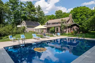 Hudson Valley meets Napa Valley! Find stillness and peace as you enter this beautifully designed home sited on one of Hyde Park's premier roads for expansive Hudson River views. Discreetly tucked away, this charming 1920s cottage was recently renovated, with contemporary design elements and a stylish addition. As you walk through the front door, the river welcomes you from the windowed French doors through the chic and airy living room. The open floor plan on the first level offers a spacious feeling and boasts a sitting room with stone fireplace, primary bedroom suite with a radiant heated spa bathroom, an additional full bath and beautiful garden and river views. The chef's kitchen opens to the dining room, optimizing togetherness when entertaining. The second floor takes you to three bedrooms, one with a fireplace and all rooms with a view, another full bath and a second primary suite with a balcony overlooking the river. There is plenty of room for guests in this sunny home as well as many private spaces to read or dream. A windowed breezeway and sitting area with radiant heat bluestone floors leads to the second wing above the two-car garage with a newly installed elevator. Currently being used as library and office suite, this versatile space could easily convert to a guest apartment, exercise gym, yoga or art studio. Special features in this wing include a Trex deck balcony with river views, a full walk-in winter closet and a vault built for your collectibles. Outside features include extensive perennial landscaping worthy of Martha Stewart, a veranda, bluestone patio with fire pit, meditation area, and a newly built saline pool and patio for optimal relaxation in the warmer months. Other recent additions to the property include solar panels, new septic, mechanicals and a reverse osmosis water filtration. A haven from the bustling world, this property is a short walk from the Vanderbilt and Roosevelt Estates with gardens and hiking trails. A perfect location for boaters, it's down the road from Rogers Point Boat Club, the Hyde Park Marina and a public boat dock. Less than 15 minutes from Rhinebeck, and minutes from the Culinary Institute, Vassar and Marist Colleges, Metro-North and Amtrak, this is the ideal location for weekenders from the city or full-time residents wanting to enjoy the Hudson Valley's bountiful lifestyle.
