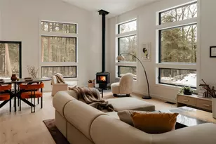 Step into contemporary luxury with this stunning new-construction home. Tucked-away on a sprawling 6-acre lot surrounded by evergreen trees, this 3-bedroom, 2-bathroom getaway offers privacy and space just 2 hours from NYC. Clean lines, open-concept living, and modern finishes define the interior, while the expansive lot invites you to unwind or entertain in style. A rare perk? Stroll from your doorstep to a private lake-perfect for morning kayaks or an evening swim. Located in an exclusive gated community, this is more than a home; it's a lifestyle upgrade. Trade the city grind for tranquility without sacrificing sophistication. Inside, the dining and living spaces are designed to maximize natural light through glass sliding doors and expansive windows. Soaring high ceilings create an airy, open atmosphere, blurring the lines between indoors and out. A cozy wood burning stove in the main living area adds warmth and ambiance on chilly evenings. Each of the three bedrooms at Lakeledge boasts sliding glass doors for a seamless connection to the outdoors. The primary suite elevates luxury with a dramatic picture window, dual closets, and an exquisitely tiled en suite bathroom featuring a walk-in shower and a spacious soaking tub. There is an additional full guest bathroom with a walk-in shower and a conveniently located laundry room to complete the interior. French oak flooring and lofty ceilings grace the entire home, lending a sense of warmth and sophistication. Stay comfortable in any season with central heating and air conditioning, while spray foam insulation ensures energy efficiency. The low-maintenance Hardiplank siding and metal roof promise years of worry-free living. Outside, the lot is bordered by evergreen trees that add a private and secluded feel to the property. Finally, there is a field stone patio for al fresco dining in the warmer months. Centrally located, the house is only 5 minutes from Jeffersonville, and less than 30 minutes leisurely drive to Callicoon, Narrowsburg, and Livingston Manor. Kenoza Hall, with it's fine dining restaurant and spa, is only a 3 minute drive away. All the upstate amenities one could ask for are within reach. Come and take advantage of this wonderful opportunity today!