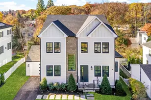 Introducing a stunning, newly constructed six-bedroom Contemporary Colonial in the highly coveted Larchmont Gardens neighborhood. This home is a masterpiece of modern architecture and luxury living, showcasing a thoughtful design that maximizes natural light and spaciousness for an unparalleled blend of style and comfort. Enter through the sun-drenched 20' entry foyer, leading to the oversized living room and adjacent formal dining room. The heart of the home is the breathtaking great room, boasting a dramatic 20' lofted ceiling, expansive architectural windows, and a striking eco-friendly fireplace. The open-concept chef's kitchen, complete with a waterfall quartz center island, custom cabinetry, and stainless steel appliances, seamlessly flows to a spacious deck, ideal for outdoor entertaining. A convenient home office with an ensuite bathroom provides an ideal work-from-home space or a comfortable guest suite. The second level presents a luxurious primary suite, a true retreat featuring a private deck, custom his-and-hers walk-in closets, and a spa-like primary bath. Three additional generously sized family bedrooms, each with its own ensuite bathroom, complete the second floor. The lower level family room, featuring a wet bar and direct access to the bluestone patio, is perfect for casual gatherings. A large bedroom with an ensuite bathroom provides additional guest or in-law suite options. This exceptional home is a must-see!