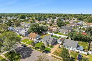 This slightly expanded Levitt Cape offers a cozy, bright layout with room to make it your own. The primary bedroom has been enlarged to include a walk-in sized closet and sliders leading to a covered patio and flat, fenced yard-perfect for everyday use and entertaining. A second set of sliders off the dining area also opens to the backyard, giving the home an easy flow. Recent updates include newer siding, roof, replacement windows, pavers, 200-amp electric, smart thermostats, Google floodlights and doorbell, as well as four mini-split AC units, a new oil tank, and updated flooring. Convenience is a standout here-the house sits just off Hempstead Turnpike, directly across from the Levittown Public Library and minutes from shopping, restaurants, parks, playgrounds, and the community pool.