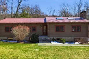 Looking for something that's "not just your ordinary home"? Need space for extended family but still want a peaceful setting close to everything? This is it! Lovingly designed and built by the builder for their own family, this custom log home has been cherished by one family and is ready for its next chapter. Every space was specifically designed and reflects thoughtful space, warmth, rustic charm, and comfortable living. The approach to the home immediately sets it apart - beautiful stone and slate surround the property, complemented by newly painted siding and a metal roof, creating a distinctive and timeless exterior. Step inside and the warmth of natural wood welcomes you. Soaring ceilings, skylights, and walls of new windows fill the home with natural light. The inviting living room with beamed 2 story ceiling, offers a sense of serenity, centered around a striking stone fireplace, and flows seamlessly into a generously sized dining room - ideal for gathering and entertaining. The well-appointed kitchen with custom counter eating, connects easily to the living spaces, for free flow entertaining and family life. The French doors lead to a spacious family room with walls of windows, where you can enjoy sweeping views of the outdoors in every season. This level features three comfortable bedrooms, including a primary suite with a beautifully renovated private bath, plus an additional full bath. The lower level offers a fully legal apartment, complete with two bedrooms, a living room with eat-in kitchen, full bath, and private access to a serene stone patio - perfect for extended family, guests, or flexible living. Outside, relax in the hot tub overlooking the tranquil yard, bordered by evergreens and enhanced by a charming brook and bridge, creating a truly special setting. With updates throughout and a one-of-a-kind character, this is a home you simply don't want to miss.