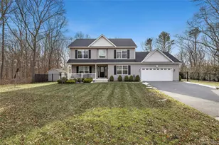 Welcome to this exceptional 2020 built Colonial situated on a cul-de-sac in Manorville within the sought after East Moriches School District. This nearly new residence offers 4 bedrooms and 2.5 baths on a private 1.25 acre lot with a 2 car garage. The main level features an eat in kitchen with granite countertops, hardwood floors throughout, a formal dining room, living room, den with gas fireplace, and half bath. The second level includes all 4 bedrooms, 2 full bathrooms and a washer and dryer for added convenience. Additional features include gas utilities and a full basement. The backyard is designed for entertaining and relaxation, featuring an 18 x 38 in-ground heated saltwater pool and paver patio. A turnkey opportunity offering space, privacy, and modern finishes in a desirable setting.