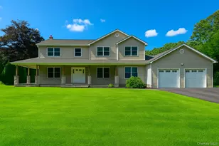 Welcome to 14 Wessel Dr, Medford - A Spacious 5-Bedroom, 3.5 Bath Colonial with Room for Everyone! This expansive home offers the perfect blend of space, functionality, and flexibility. Situated on over 3/4's of an acre with beautiful greenery and a large yard, this home features a full wraparound porch, two-car garage, and a full unfinished basement with separate outside entrance provides endless potential. Step inside to find a bright and airy open-concept layout. The main kitchen has been tastefully renovated with white shaker cabinets, stainless steel appliances, quartz countertops, and a center island ideal for prep and gathering. Adjacent living spaces boast new flooring, recessed lighting, and natural light flooding through numerous windows. A separate formal dining area offers even more room to entertain. Upstairs, you'll find generously sized bedrooms including a massive primary suite with ample closet space. The bathrooms are stylish and updated-including a luxurious main bath with soaking tub and walk-in shower. Plush new carpeting and fresh paint complete the upstairs retreat. What sets this home apart is potential separate living space on the first floor-perfect for extended family or guest quarters. Whether you're looking for multi-generational living or additional income potential, this home delivers the flexibility you need. Enjoy peace and privacy while still being close to major highways, shopping, and schools. Taxes under $13k with the STAR credit. Don't miss the opportunity to make this move-in ready home your own!