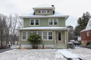 Step into this inviting home, where timeless character is beautifully complemented by natural woodwork throughout. The updated kitchen boasts sleek stainless steel appliances, recessed lighting, and thoughtful features perfect for everyday cooking and gathering. Enjoy a seamless flow from the inviting living room to the formal dining room, ideal for entertaining. This home offers hardwood floors, 9 ' ceilings, 4 bedrooms and 1.5 baths. There is also a walk-up attic for extra space or storage and an unfinished basement. Outdoors, you will find a nice level backyard featuring a deck and patio and a barn for added storage. Driveway parking ensures convenience. Located near all shops, schools, and highway access, this home combines charm, comfort, and accessibility. Don't miss the opportunity to make it yours!