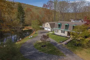 Wake up to the tranquil shimmer of your own private pond at this very special property. This one-of-a-kind home is a seamless blend of classic charm and style that will appeal to someone looking for the perfect spot to call home. Step inside to a warm and inviting living room, anchored by a stone fireplace, perfect for cozy evenings. A handcrafted craftsman built staircase adds character and grace, leading the way to the upper level. The updated kitchen is both functional and chic, ideal for entertaining or quiet mornings at home. The dining room is a sun-soaked haven with panoramic views of your own private pond - an everyday escape just beyond the glass. With a spacious primary suite featuring a sauna in the bathroom, rooms for 2 offices and a den or gym and 3 full bathrooms, this home is built for comfort and versatility. Juliet balconies off three of the rooms invite the outdoors in, offering tranquil views and a fresh breeze that reminds you: you're living somewhere truly special. The magic continues outside. Enjoy the serenity of your private pond, complete with a dock for morning coffees or soaking in the sun. Host unforgettable gatherings around the fire pit or retreat to the pond side cabana for some quiet downtime. A detached two-car garage with a spacious loft offers additional flexibility for storage, hobbies, or future expansion. Whether you're looking for a weekend escape or a full-time haven, this property isn't just a home - it's a feeling. Come see for yourself why this retreat is too good to miss.