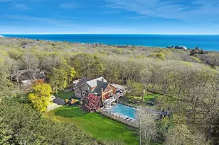 Nestled on an acre in Montauk's Hither Woods, adjacent to over a thousand acres of pristine reserve, this extraordinary home is a private, amenity-filled oasis perfect for both entertaining and luxurious relaxation. This space features a professional bar, game room with a full entertainment system, arcade, billiards, a gym, an office, and more-all opening out to the pool area, creating a seamless indoor/outdoor flow. On the first floor, expansive living spaces include a music room, dedicated movie theater, multiple living rooms, a formal dining room, a cozy den, and a gourmet kitchen equipped with state-of-the-art appliances from Wolf and Sub-Zero, plus a spacious breakfast area.