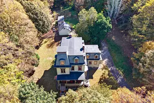 This stately Second Empire Victorian, built in the late 1800's, proudly sits on over 11 acres of land and is characterized by its grand style, distinctive mansard roof and rich garnishment. A unique and special home that blends historic charm with classic elegance. When you drive onto the property, the mere sight of this special home will take your breath away! It's tall, stately, distinguished, yet warm and inviting. The rocking chair porch welcomes you, and the grand entry, the custom wood floors, moldings and high ceilings will surround you in classic elegance. The living room boasts an original decorative fireplace and large windows that let the afternoon sun shine into this expansive room. The majestic formal dining room has a wood burning fireplace with dental molding and east-facing windows offers the perfect setting for holiday meals or informal gatherings. The La Cornue stove, which features six burners, a saucier, electric and gas ovens and grill top is the focal point of the large updated kitchen and just steps away is the laundry, a pantry and door out to the yard. A perfect backdrop for backpacks, sports gear and shoes! The powder room under the stairs is a design feature from the 1800's! Tucked away, yet beautiful and accessible to guests. As you ascend to the second floor, the grand stairway, a custom handrail and elegant staircase lead you to three well-appointed bedrooms, including a generous primary suite featuring a four-piece bathroom and closet. Two additional bedrooms provide ample space for family, guests, or a home office, and share a full hall bathroom. A large hall closet and hardwood floors complete the second level. There is more...a third floor retreat that is light, bright, warm and inviting. There is a bedroom with captivating full bath and an oversized bedroom with a walk-in closet. Outside, the possibilities are endless, perfect for those who dream of having their own veggie garden and a fenced area ideal for for two and four-legged family and friends. There's a tree house, a pump house, a detached garage, and a chicken coop waiting for some love. From level lawns to rolling slopes and wooded areas, this property is a true oasis. Come experience its magic!