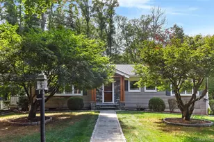 Nestled at the end of a quiet cul-de-sac, this beautifully updated Ranch offers the perfect blend of privacy and charm in a serene wooded setting. The main level features gleaming hardwood floors and updated windows including wood trimmed bay windows throughout. A sun-drenched living room with a striking stone-surround gas fireplace, opens to the dining area with access to a two-tier Trex deck - ideal for entertaining or relaxing in nature. The kitchen is a chef's dream, boasting granite countertops, tile flooring and backsplash, and stainless steel appliances. Down the hall is the primary bedroom, two additional bedrooms, one with an updated full bath, and a hall bath with a granite vanity and a tiled walk-in shower. Downstairs, the finished lower level offers a versatile family room with walk-out access, a laundry area, and two additional rooms perfect for a home office, gym, or guest space. This home is a true retreat with modern comforts and timeless appeal.