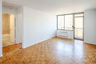 Bright 1 BR in a full service building. This large one bedroom features great closet space, a private balcony, marble bath and an open kitchen. The building features a concierge, complimentary gym and pool and a live in super.