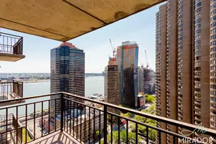 Beautiful studio on the 31st floor of New York Tower with a private balcony and water views. The kitchen features mocha granite counter tops, full size stainless steel appliances, cherry cabinets and a breakfast bar.New York Tower is a 38-story luxury high-rise at 330 East 39th Street in Murray Hill, exclusively represented by Mirador Real Estate. The building comprises 510 rental apartments, many with large private balconies offering impressive East River and Manhattan skyline views. There is a 24-hour doorman as well as concierge services. Amenities are complementary to residents and include a gym, lounge, and outdoor deck furnished by Restoration Hardware. The hallways were beautifully remastered in 2015. Parking and bike storage is available for an additional fee. This is a non-smoking building that allows cats but no dogs. No walls or dividers of any type can be erected in the units. Please ask about our partnership with Lifetime Fitness. Photos may be of a representative unit, floor plans are representative and approximate. Pricing subject to change.
