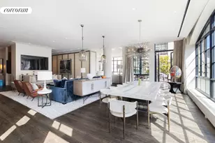 A n immersion into architectural grandeur , the Sky House is a testament to elite craftsmanship and visionary design and boasts the distinction of being the single largest residence at The Hubert . I ts sheer scale and magnitude is nothing short of awe-inspiring . Ceilings soar, spaces expand, and ev ery room unfolds with a vastness that captures the essence of gracious l iving . The Sky House is a custom combination featuring five-bedrooms, five-and-a-baths with 6,250 square feet over two floors and four landscaped terraces. Arrive on the sixth floor and be instantly captivated by the 12 ft ceilings, gorgeous 11 inch wide-plank oak hard wood floors and a stunning, architectural concrete staircase. Pass through the gracious foyer and you're invited to relax and entertain in the expansive, nearly 900 square-foot great room with sun-splashed designer interiors outfitted in Venetian plaster glazed wall coverings, custom built-ins and designer lighting. Host lavish dinner parties in the dining area wrapped in floor-to-ceiling windows to the east, west and south and flanked by two lush terraces with iconic views of One World Trade. After dinner, usher guests into the Library/Piano room with a custom onyx bar, high lacquered cabinets, subzero wine fridge and terrace access. Down the hall, relax in the Media room, configured as a luxe den with a built-in home entertainment system, and full bath with shower and waterworks fixtures, that could easily serve as a fifth bedroom suite. The amazement continues into the Magic Room, where you will find a wall of illuminated navy built-ins and a secret passageway through the bookcase rerouting you to the great room. Right around the corner is a powder room, showcasing a custom stoned honed sink and polished nickel Waterworks fixtures. Elevate your culinary experience in the sprawling, sunny eat-in kitchen boasting two massive i slands with Imperial Danby countertops surrounded by custom lacquered cabinetry with brushed bronze trim, and bespoke horn handles. Enjoy casual dining at the serving island with breakfast bar , while the chef's island offers plenty of prep space with two Kalista sinks , two Miele dishwashers , and gorgeous illuminated showcase cabinets with glass doors floating above. The suite of elite appliances includes a fully vented eight-burner Ilve Majestic gas range with double ovens; a steam oven, microwave and warming drawer by Wolf; a 42-inch Sub-Zero refrigerator-freezer with multi-zoned doors and temperature-controlled wine storage for 270 bottles. A large walk-in pantry with walnut shelving provides plenty of dry storage for all your provisions. Ascend the stunning , open staircase with burnished bronze railings imported from Austria to explore the remarkable owner's retreat. The serene primary bedroom b eams with warm, natural light through southern and western outlooks and is wrapped in custom bookshelves, triple shellacked walls, illuminated tray ceiling and a private terrace perfect for morning coffee and stargazing above the skyline views . Swaths of Imperial Danby marble fill the beautiful en -suite bathroom featuring a Waterworks soaking tub, wide double vanity, private water closet, heated floors and Swedish Waterworks steam shower with two shower heads and an overhead Hansgro he rain fixture. A custom dressing area with two walk-in closets can accommodate even the most robust wardrobes. Three beautifully appointed secondary suites - including two with access to a fourth terrace - offer roomy closets and breathtaking en suite marble bathrooms with polished nickel Waterworks fixtures, medicine cabinets and heated floors. This fine home boasts all new systems, including heating, electrical, plumbing, sprinklers and waterproofing. Enjoy absolute comfort and convenience with m otorized Lutron Shades, Lutron l ighting , multi-zoned climate control and Sonos speakers throughout, all operate d by a Crestron Smart Home system. Soundproofed walls and