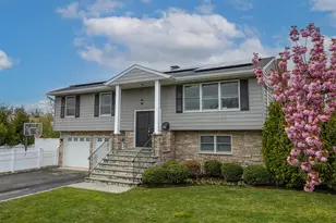 Mint-Turnkey High Ranch on oversized lot. This home is bright and airy with an open floor plan and vaulted ceilings. Updated kitchen with stainless appliances, granite island and counters tops. Large living and dining areas. Three bedrooms on this level including a primary en-suite with newly renovated bath and a hall bath. On the ground floor there is a spacious den with custom built-ins around the fireplace. There is a bright office/bedroom, laundry room, half bath and access to the attached 2 car garage. Outside thru the sliders find a private mature landscaped yard with a spacious custom patio and built-in Fire-pit for entertaining. Newly done driveway and In-ground sprinkler system. Central AC. Fully Owned Solar Panels and LED Lighting make this home extremely efficient. This home has great potential for an in-law suite. Low Taxes!!! Don't Miss this incredible property!