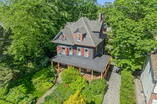 One of the original Oyster Bay Queen Anne's built during the Victorian Era when Teddy Roosevelt was at Sagamore Hill. This handsome example of turn of the century architecture features real wood shutters, cedar siding and a wrap around porch to enjoy quiet summer afternoons and evenings. There are three floors including an extra large loft room on the third floor. The home has a chef's kitchen (Garland gas range and Subzero refrigerator), gas cooking and heating, central air and a generator that services the house and the detached barn/garage. The Belgian block driveway, with blocks sourced from lower Manhattan, is gated. This low maintenance property is landscaped with mature plantings and perennials. In ground sprinklers, 200 amp service.