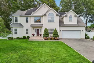 Welcome to 51 Justin Circle, a stunning and spacious 5-bedroom, 3.55-bath post-modern home, perfectly situated in a beautiful belgium block-lined neighborhood combining comfort, elegance, and modern amenities. This well-maintained home is made for everyday living and entertaining with 3600 sq ft of space plus an additional 1400 sq ft basement w/9ft ceiling. Step into the impressive 2-story foyer and enjoy a thoughtful layout that includes a main-floor bedroom with a private bath-ideal for guests or a home office. The spacious kitchen features a center island and butler's pantry, opening to the formal dining room, perfect for holidays and dinner parties. You'll also find a formal living room and den with a gas fireplace. Upstairs, the primary en suite offers his & her walk-in closets, a garden tub, and plenty of space to unwind. 3 additional large bedrooms and another full bath complete the second floor. The full basement offers endless possibilities and lots of surprises -create a home gym, theater, playroom, or more. Outside, enjoy the entertainer's backyard, ideal for relaxing or hosting gatherings. Additional features include a built in electric car charger and owned solar panels for energy efficiency. Close to SUNY, beaches, highways, LIRR & shopping. Don't miss!