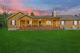 Welcome to this stunning ranch, constructed in 2013, offering both comfort and style. Relax on the new Trex front porch with outdoor ceiling fans before stepping into a show-stopping living room featuring soaring custom wood ceilings and a floor-to-ceiling stone wall with a pellet stove fireplace. The open-concept layout flows into a beautifully renovated kitchen with quartz countertops and a unique custom island. Down the hall, enjoy a dedicated laundry room, a luxurious double-door master suite with a walk-in closet and spa-like bath, plus two additional bedrooms and a full bath. The finished full basement will be completed by closing, complete with a 3rd full bathroom and freestanding tub. Step outside to a spacious 400 sq ft trex back deck with a fenced-in area-perfect for pets or play. Bonus features include a 30x30 attached 2-car garage with 8-ft doors and a large bonus room above. A true must-see!