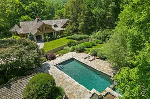 Two Ponds. Long, gated drive to perfect privacy. Spectacular Arts & Crafts Style Estate. Handsome Stone and Shingle facade with peaked roof and massive pillars. Designed by local architect Ralph Mackin and built by Danny Devito in 2002. Approximately 5000 square feet of living space. Stunning interior spaces with fabulous detailing, floor-to-ceiling stone fireplaces, raised paneling and incredible millwork. Perfectly scaled rooms for entertaining yet completely comfortable for everyday living. Entrance Hall with stone fireplace and beamed ceiling. Phenomenal Great Room with vaulted ceiling, impressive floor-to-ceiling stone fireplace and two sets of French doors to the rear terrace. Chef's Kitchen open to the octagonal Dining Room with vaulted ceiling and beadboard detailing. Paneled Media Room. First Floor Primary Suite with Sitting Room and luxurious Spa Bath. Spacious Loft with Reading Room and large Bedroom Suite with Bath. Stone terrace with firepit overlooking two scenic ponds. Two Guest Houses. Pool with spa, outdoor kitchen, outdoor shower and Pool House. Nearly eight acres adjoining the protected lands of the 4315-acre Pound Ridge Reservation. The perfect family compound or peaceful retreat.