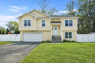 Location, Location! Sits this beautifully updated sun-drenched 4-bedroom, 3-bath hi-ranch offering the perfect blend of coastal charm and modern comfort with deeded beach rights, Just four blocks from Friendship Beach Step inside to soaring cathedral ceilings with exposed beams that create a dramatic and airy ambiance. Natural woodwork enhances the space, while the open-concept floorplan provides a seamless flow between the living and dining areas-ideal for both everyday living and entertaining. A cozy wood-burning stove and statement chandelier add warmth and elegance to the formal dining room. The chef's kitchen is as stylish as it is functional, featuring crisp white cabinetry, quartz countertops, a farmhouse sink, stainless steel appliances, and a spacious eat-in area. An island offers additional seating and charm, while a dry bar with wine refrigerator makes hosting effortless. Hi-hats, custom moldings/paint and beautiful wood floors run throughout much of the home, complemented by built-in air conditioning for year-round comfort and Barn doors to the laundry add character and a modern touch. The primary suite serves as a peaceful retreat with a private bath and walk-in closet. A first-floor bedroom, den and full bath with private side entrance provides flexibility for guests, extended family, or a home office. Set on an oversized .32-acre lot, the fully fenced backyard is designed for outdoor enjoyment, featuring upper and lower decks perfect for relaxing or entertaining. A storage shed adds convenience. Additional highlights include a two-car attached garage, private driveway, and ample street parking. Don't miss this incredible opportunity to own a move-in-ready home in an unbeatable location-this one won't last!