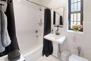 Step into a world where sophisticated living meets urban convenience. This expertly designed 750 sq. ft. apartment is your canvas for creating the life you've always dreamed of. The moment you enter, you'll be captivated by the thoughtful layout and contemporary finishes that elevate every inch of this space. The heart of this home is the stunning open-concept living area, where a modern chandelier casts a warm glow over gleaming hardwood floors, inviting you to unwind after a long day, for cozy movie nights or lively gatherings with friends. The kitchen is a culinary enthusiast's dream, boasting crisp white cabinetry, stainless steel appliances, and a subway tile backsplash that adds a touch of timeless elegance. Whether you're whipping up a gourmet meal or enjoying a quick breakfast at the chic dining area, this space is designed to inspire your inner chef. Retreat to the tranquil bedroom, where soothing green walls create a serene atmosphere perfect for rest and relaxation. The spacious layout accommodates a king-size bed and ample storage, while large windows flood the room with natural light. A modern ceiling fan ensures year-round comfort. The bathroom is a spa-like sanctuary, featuring a pristine white palette accented by matte black fixtures that exude contemporary sophistication. Ample storage and a full-size tub/shower combination offer both practicality and luxury. This thoughtfully curated apartment isn't just a place to live-it's a lifestyle upgrade that puts you at the center of modern, convenient living. Your aspirations become reality in this chic urban retreat. Welcome home.