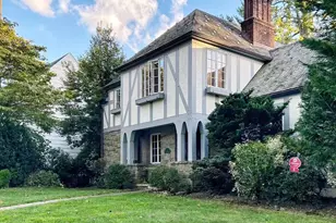 This charming 4-bedroom Tudor home, nestled in Edgewood's prestigious "The Woods" estate area, is a true craftsman's masterpiece. Set on a flat 1/3-acre lot, it seamlessly blends romantic details with modern comforts. The living room is a stunning gathering space, featuring a dramatic cathedral ceiling and beautiful stained glass windows. The first floor also includes an office, a powder room, a guest bedroom with an en-suite bath, and a spacious, south-facing country-style eat-in kitchen with a sunroof-perfect for enjoying peaceful mornings or entertaining guests. The formal dining room opens to a south-facing terrace, ideal for al fresco dining. Upstairs, the home offers three generously sized bedrooms, including a master suite with stairs leading to expansive storage closets or an additional office. The upstairs landing further enhances the sense of openness. The above-ground, south-facing lower-level playroom provides ample natural light and flexible space for various uses. Additional highlights include beautiful wide pegged oak floors, intricate woodwork, leaded glass windows, and a backup generator. The home also features a private yard, a large pantry closet, and a 2-car attached garage. Conveniently located within the highly desirable Scarsdale School District and just a short walk to Metro North for an easy commute to NYC, this one-of-a-kind home offers the perfect balance of timeless elegance and modern convenience.