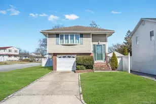 Original owners proudly present this meticulously maintained and truly magnificent Hi-Ranch, perfectly situated on a flat, oversized corner lot offering incredible curb appeal, flexibility, and endless potential for extended family living. Built in 1964, this home has been thoughtfully cared for over the years and features a highly desirable layout with separate entrances, making it ideal for multi-generational living or additional private space. The second floor offers three spacious bedrooms, one full bath, and beautiful hardwood floors preserved beneath the carpeting-just waiting to be revealed, while the first floor provides a separate entry and a versatile layout perfect for extended family, guests, or a home office setup. This home offers just under 1,700 square feet of well-designed living space and showcases cedar-impression front siding complemented by a partial brick facade, a cement driveway with a cobblestone border, and white PVC fencing for a clean, finished look. The exterior is fully wrapped in vinyl siding for low maintenance, while the rear yard features a stamped concrete patio, perfect for entertaining and outdoor enjoyment. Inside, the kitchen is equipped with a stainless steel refrigerator and dishwasher, and the home is serviced by central air conditioning, providing comfort and convenience throughout. Additional features include a one-car attached garage, two separate gas boilers (approximately 20 years old) offering efficient and independent heating options, and connection to the sewer for added convenience. Major updates include the roof and windows, both approximately 15 years old. Positioned on a perfectly flat corner lot, this home delivers both space and functionality inside and out, presenting a rare opportunity to own a solid, well-built property with incredible upside in a prime setting