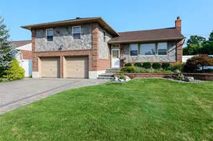 Picture perfect, clean as a whistle three-bedroom split in the Salisbury area of Westbury with East Meadow Schools. The entry foyer leads to the living room with cathedral ceiling and triple window that floods the room with light. There is a chef's kitchen with stainless steel appliances, abundant cabinetry, granite counters and large breakfast area with picture window overlooking the country-club rear property with 16 x 32 inground, heated, saltwater pool. The formal dining room completes this level and has windows overlooking the rear property. Down to the den and half bath and down again to the partial, fully finished basement with storage closets, laundry and utilities. The second level features the primary bedroom with full bath and walk-in closet and there are two additional bedrooms and full, beautifully tiled full bath. The exterior of home is clad in brick, stone and vinyl and there are in-ground sprinklers, lovely gardens, paver driveway, bluestone walks, brick garden walls, specimen shrubs and privacy plantings surrounding the enormous paver patio that will handle any large gathering and surrounds the gorgeous heated inground pool with diving board. Additional features include: 6 zone IGS, 16x36 inground salt water pool, loop-lock solid pool cover with safety fence, whole house generator,4 zone gas heat with 4 programmable thermostats keypad door locks, security cameras, remote control window blinds, tilt-in windows, electric-eye garage door, garage organizing system and more! Situated on a lovely neighborhood street you are tucked away yet close to everything central Nassau has to offer. Excellent shopping, great parks, fabulous dining and close to all major transportation, Eisenhower Park and LIRR.