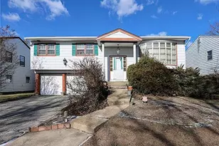 This 4-bedroom, 2.5-bathroom Hi-Ranch offers a practical layout and convenient location in North Woodmere. The main level features a 2-story entryway, leading to an L-shaped living and dining room and a large eat-in kitchen with access to an outdoor deck. The hallway includes a full bathroom with double sinks and a tub/shower. The primary bedroom ensuite includes separate closets, and two additional bedrooms provide ample space. The lower level has a large den/family room with windows and slider to the outdoor patio, a fourth bedroom, a half-bath, a utility room, and access to a 2-car garage with motorized doors and private driveway. The landscaped backyard includes a flat lawn and patio, and the home is located with front views of Doxy Brook Park and close to North Woodmere Park, .