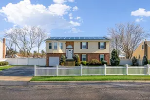 This beautifully maintained Hi-Ranch split-level home offers a spacious, open, and airy layout filled with natural light. The residence features five generously sized bedrooms, two full bathrooms, ample closet space, a spacious kitchen, and a large family room providing comfortable and flexible living areas throughout. Attic storage adds additional convenience, while a full basement with high ceilings offers exceptional bonus space ideal for a recreation room, home gym, media lounge, or versatile use. Thoughtful design details include hardwood floors, high vaulted ceilings, and a refined living room/dining room combination that enhances both everyday living and entertaining. Additional highlights include upgraded electrical, solar panels, and a full security camera and alarm system. The home offers a huge backyard with outstanding outdoor space ideal for entertaining, gardening, or relaxing, complemented by a private garage and parking for up to eight vehicles. Conveniently located near schools, parks, bus service, and the Wyandanch LIRR station, this property delivers space, functionality, and elevated suburban living.