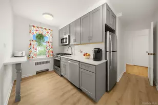 Accepted Offer. This fully renovated 1-bedroom, 1-bathroom apartment is a perfect blend of modern style and unbeatable convenience - ideal for commuters. Just minutes from Metro-North, bus stops, major highways, and the Cross County Shopping Center, the location makes daily travel simple. Inside, the unit features brand-new stainless steel appliances, Quartz countertops, updated fixtures, fresh paint, refinished hardwood floors, and large, deep closets for ample storage. The well-maintained building offers great amenities, including a fitness center, two laundry rooms, elevators, an upgraded security camera system, a live-in superintendent, and a bike/storage room. Heating is oil-based (above ground), and parking is available with a short wait list. Please note, this is a co-op, and board approval is required. The listing agent must review the co-op package before it's submitted to management - no exceptions. This is a smart, stylish home in a location that truly works for everyday life.