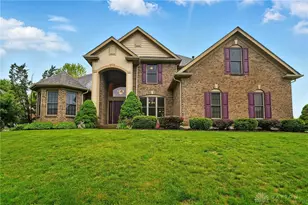 Welcome to this stunning custom brick home featuring 5 bedrooms and 3 full baths, perfectly situated on a beautifully landscaped, fully fenced half-acre lot at the end of the street. A charming landscaped walkway leads to the covered front porch and into the spacious foyer, opening to a warm and inviting great room with two bay windows, rich wood trim, vaulted ceilings, Anderson wood windows, and a gas fireplace with a custom wood mantel. Located off the great room is the awesome kitchen with a pantry and breakfast room looking over rear yard! The first-floor primary suite is a true retreat, offering a private sitting area or office, two oversized walk-in closets, and a luxurious en suite bath complete with a six-foot whirlpool tub, large walk-in shower with bench, private water closet, dual vanities, and a linen closet. A second bedroom on first floor and full bath, laundry room, great room, dining area, and kitchen round out the first floor. The kitchen features Samsung stainless steel appliances (updated in 2019) and opens to a back patio-perfect for entertaining or relaxing. Upstairs, you'll find three generously sized bedrooms, each with walk-in closets, loft space, and a full bath with a double vanity and tub/shower combo. The 1,900-square-foot basement offers great potential, plus loads of storage with two egress windows, plumbing for a full bath, and includes a water softener, La Pure water treatment system, sump pump, and newer mechanicals including a new water heater (2024) and furnace. Additional features include a 2020 roof, 2017 A/C unit, Anderson wood windows, radiant barrier insulation for energy efficiency, La pure water treatment, system, oversized 2.5-car garage. A backyard shed offers additional storage. Located just 5 minutes from top-rated schools, shopping, health care, and Wright-Patterson Air Force Base, this home offers the perfect combination of comfort, style, and convenience. This house is a must see and won't last!!! HURRY!