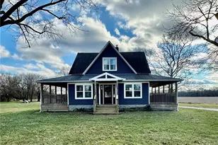 Discover a beautifully renovated farmhouse that perfectly balances modern luxury with classic charm, nestled on 2 picturesque acres. The heart of this home features a newly renovated kitchen showcasing elegant quartz countertops, a spacious island, and thoughtful additions including a beverage cooler and walk-in pantry with coffee bar. New appliances, ceramic tile flooring, subway tile backsplash, and wood beams complete this culinary haven. Original hardwood floors flow throughout, complemented by stunning crown molding and custom trim work. The craftsmanship of this home is breathtaking. Enjoy the welcoming living room as you sit around a cozy gas fireplace. Main floor primary bedroom suite impresses with timeless French door entry and private side porch access. The luxurious primary bathroom features a classic claw foot soaking tub, oversized walk-in shower, and beautiful tile work, accessed through a stylish modern barn door. An enclosed front porch, currently serving as a light-filled office space, adds versatility and extra square footage. The formal dining room showcases built-in cabinetry and French doors leading to an inviting porch. The main level includes a convenient half bath, while upstairs offers three additional bedrooms and a full bathroom. The property's outdoor space is equally impressive with two outbuildings, including a 28x36 barn, perfect for storage or workshops. A new cedar-fenced raised bed garden area measuring 37x74 feet awaits green thumbs, while a welcoming fire pit area creates the perfect gathering spot. The U-shaped gravel drive provides ample parking. Recent updates include new gutters (2024), vinyl siding and porch areas (2021), roof (2019), vinyl windows (2021), and a brand-new water softener. The partial basement includes laundry hookups, storage, and garage access. At 2,125 square feet, this thoughtfully updated farmhouse offers the perfect blend of modern convenience and timeless appeal. This home is proudly agent owned.