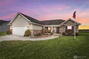 Welcome Home to this meticulously maintained single-story ranch, built in 2014 and thoughtfully designed for comfort, convenience, and modern living. Step inside to the spacious great room featuring a cathedral ceiling, creating an open, airy feel that flows seamlessly into the gorgeous kitchen that boasts a center island that's perfect for gatherings, a large walk-in pantry, and a warm eat-in dining area-ideal for everyday meals or entertaining. The owner's suite is a true retreat, privately located on one side of the home.Enjoy a generously sized bedroom, double sinks, a gorgeous custom tiled shower, and a large walk-in closet. Bedrooms 2 and 3 are thoughtfully positioned on the opposite side of the home, offering privacy for family or guests. A cozy home office provides the perfect spot for working from home or managing daily tasks. You'll love the pocket doors throughout, maximizing space and adding a custom touch. Freshly updated with all-new carpet and paint, this home is truly move-in ready. All appliances convey, making your transition even easier. Offering 3 bedrooms, 2 full baths, and a 2-car attached garage, this home checks all the boxes! Don't miss your chance to own a modern, spacious, and beautifully finished home in the sought-after Miami East School District.