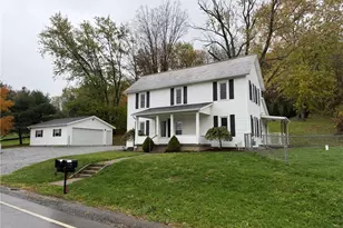 Beautifully updated 4 bedroom, 1.5 bath vinyl sided home with scenic country views. Decorative fireplace in the living room. Modern cherry kitchen includes appliances. Spacious family room with decorative fireplace. Main floor bedroom and laundry. New carpet throughout. Vinyl thermo replacement windows. 11 X 6 covered side porch with chain link fence enclosed side yard. 24 X 24 detached garage with opener. Peaceful country setting with 1.1+/- acres.