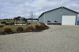 WOW! WHAT A PROPERTY! This is a car enthusiasts dream. This 48x102 building sits on a 5 acre corner lot atop a hill with the most gorgeous country views on all sides. Inside you'll find enough space for 12+ cars. Included is a car lift, air compressor, metal racks and full alarm system with cameras. On the main level is an approximate 1000 sq. ft. open living quarters. Up the steps you''; discover two additional rooms for whatever you like. Outside sits a new 40x16 shed for extra storage. There's also a pond with a solar powered aeration system. With 5 acres there's enough land to build a house as well. There are surveillance cameras on the property.