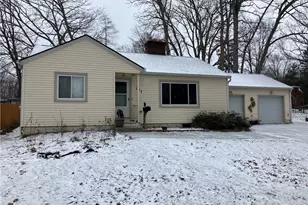 This 3 BR ranch is located in the City of Kent, walking distance from beautiful downtown with restaurants and entertainment. Kent State University. The 1/2 acre lot has a 20x14 shed with electric. The living room and dining room have oak hardwood floors. The Living room has a sandstone wood burning fireplace and flat screen TV. The updated kitchen with black appliances; Range, Refrigerator, Microwave and dishwasher. The master bath has a walk-in shower with grab bars, and updated vanity and is located in a large master suite with a sliding door to the patio. There is a 2 1/2 car garage with storage above. The basement has a large recreation room with woodburning fireplace and bookcases, utility room with work area. The laundry room with a washer and dryer and utility tub.