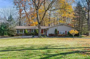 Experience lake living at its finest in this spacious ranch home in the private lake community of Sherwood Park. Set on over 1.2 serene wooded acres, this 4 bedroom, 2 full bath home offers over 3,300 sq ft of living space including the lower level. The inviting living room features a floor-to-ceiling stone faced, wood burning fireplace that serves as the focal point separating the living & dining spaces & the expansive picture windows frame sweeping views of the lake & surrounding landscape. The spacious family room featuring vaulted ceilings accented with exposed wood beams & the step-down layout creates a natural flow from the living room making this space ideal for gatherings or entertaining. The eat-in kitchen offers a breakfast bar, granite countertops & ample cabinetry space and opens to the dining room. The primary suite with ensuite bath & 3 other bedrooms & a full bath complete the main level. The expansive lower level rec room features a floor-to-ceiling brick WB fireplace & a bar area, perfect for hosting gatherings or game nights with plenty of room for multiple activity zones. An additional large room in the lower level can be used as a work out area, play room or just for extra storage. So many options! Circular driveway leads to the 2 car attached garage. Gorgeous fenced in yard! Recent updates include: Replaced roof (2020), replaced furnace (2018), replaced central air (2020), full bath remodel (2020), replaced dryer (2023), replaced dishwasher, stove, refrigerator & microwave (2012), kitchen remodel (2010). INCLUDED: All kitchen appliances, washer, dryer, window treatments & fire pit in backyard. Conveniently located near I-271, US-422, OH-91, restaurants, shopping & other local attractions. Sherwood Park offers a little slice of heaven with lush greenspace, stocked lake, gazebo, benches & a picnic area. This home is a must see...