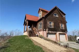 Extraordinary custom log home situated on 3.65 scenic acres on one of the highest points in Monroe County, just minutes from Woodsfield and Lewisville. Built in 2009 with exceptional craftsmanship, this home features cedar-stained half logs for superior insulation and a seamless copper-coated stainless steel roof with 50-year warranty. The dramatic 28' vaulted great room showcases a floor-to-ceiling stone fireplace, massive peeled hickory tree support, and custom antler chandelier. Gourmet kitchen offers custom hickory & pecan cabinetry, mica countertops, Italian stone flooring, and stainless appliances. The loft-style master suite includes panoramic views, office area, wraparound cedar walk-in closet, and spa bath with granite tops, hammered copper vessel sinks, Jacuzzi tub, and onyx tile shower. Outdoor living features multiple covered porches with copper roofs, a deck with 6-person Jacuzzi, and breathtaking valley views extending into West Virginia. Additional highlights include a finished basement with heated floors, wine cellar, 4-car walk out garage, whole-home surround sound, and ADT security system. Whole house sound system. A truly one-of-a-kind luxury log retreat offering privacy, craftsmanship, and incredible views. *** SELLER DOES NOT OWN GAS AND OIL RIGHTS***