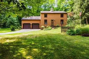 If Privacy and quiet living is what you seek than search no more! This 1 1/2 story Cedar home sits on an almost 2 acres wooded lot. The driveway winds back to the home which is surrounded by mature landscaping. The Great Room is open to beamed ceiling an features a floor to ceiling brick masonry wood burning fireplace. Pella windows allow in ample natural light. The dining Room is open to the great room and has a sliding door which leas to an enclosed all glass sun porch. The kitchen is features granite counter tops and has a mud room attached which adds additional storage an pantry space. The first floor Master Bedroom and Full Bathroom finish off the main floor. The second level contains 2 additional large bedrooms, full bath and a nook that overlooks the first floor. The basement is partially finished with an additional family room that would make a great game room. The electrical was recently upgraded to 200 amp service (April 2025). You also will find a 75 galloon hot water tank, water softening system and a access to hook in to a generator are also found in the basement. The oversized 2 car garage allows for additional storage. A carport was also added in 2024. The backyard features a brick patio, potting shed and many flowers bed for you to make your own. Please do not hesitate to schedule your private showing!