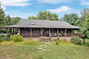 Opportunity knocking to own this beautiful and well-maintained log cabin-style home on 3.73 secluded acres. The home's features include a great room with vaulted ceilings and a double-sided stone fireplace, a kitchen with appliances, a dining area, and a living area that overlooks the private backyard. It has three bedrooms, two full bathrooms, a walk-in pantry, a first-floor laundry room, and easy garage access. The lower level offers one bedroom, two full bathrooms, a kitchen with appliances, a large living area, a laundry room, walk-out access, and ample storage. Additional features include 200-amp electric, a paved driveway, a wrap-around covered porch, a side patio, and a storage shed.