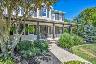 Located on a quiet street in the Cali Woods community of Concord Township, this beautiful & well-maintained Colonial sits on 2.18 acres & offers a rare combination of neighborhood living & parklike privacy. The home is designed for both comfort & flexibility, with 4 bedrooms, including a 1st-floor primary suite, 2.5 baths & over 4,613 sq ft of living sq ft w/ a finished basement. Outdoor living shines w/ a wrap-around front porch, deck, brick paver patio & a hidden trail that leads to a wooded fire pit area. An eat-in kitchen features granite countertops, stainless steel appliances, center island & dinette w/ access to the deck, and opens to a vaulted family room w/ dramatic floor-to-ceiling fireplace. A butler's pantry connects to a large flex room, ideal as a media room, formal living space, or multipurpose retreat. The first-floor primary suite includes a tray ceiling, walk-in closet & spa-like en-suite bath w/ jetted soaking tub, double vanity & walk-in shower. Upstairs, all bedrooms have walk-in closets, plus there's a finished room above the garage for a gym, office, or hobbies. The finished basement provides even more recreation & living space. Additional highlights include a 1st-floor laundry/mudroom & 3-car garage w/ extended parking pad, crafted brick chimney and a shed. Recent updates include: Replaced roof (2012), washer/dryer (2020), all kitchen appliances (2015), water heater (2017), sump pump (2018), installed granite countertops & replaced sink, garbage disposal & light fixtures in kitchen (2015), installed maple cabinetry, beverage refrigerator, stainless bar sink & granite countertops in butler's pantry, added 1st-floor laundry/mud room, updated guest bath, installed tile flooring & crown molding in media room, and more. INCLUDED are ALL kitchen appliances, washer/dryer, beverage refrigerator, porch swing, security system & all window treatments. Conveniently located nearI-90, OH-44, shopping, restaurants, parks, and other local attractions.