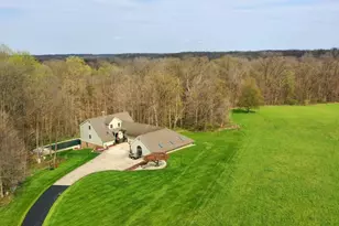 Escape to your own private country oasis on over 20 acres! Tucked deep off the road, this beautiful property offers the perfect mix of privacy, nature, and space to enjoy the outdoors. The land features woods, trails for four-wheeling, a creek, a large yard, and an in-ground pool ideal for summer entertaining.The home includes 4 bedrooms, 3.5 bathrooms, a 5-car garage with remotes, and a large workshop--perfect for vehicles, hobbies, business, and storage. The fully finished walkout basement offers a partial kitchen, living room, bedroom, and full bath, with direct access to the pool area, creating a great space for guests or entertaining. The primary suite was fully remodeled in 2022 and features custom cabinetry, tiled double sinks, dual shower heads, and a large walk-in tiled shower. Additional other features include new geothermal heating in 2026, new pressure tank in 2025, excellent storage throughout, and great outdoor entertaining space. Recent updates include new skylights, asphalt on over 700 ft. of driveway, newer well plumbing and electrical, and leaf guards installed around the entire home.