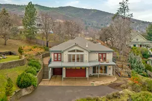 Spacious custom view home above the boulevard near Asante Ashland Community Hospital, just five minutes from the downtown plaza and Lithia Park! Main level with solid oak hardwood floors, vaulted open-concept living room with sliding glass doors to expansive composite deck with unobstructed views of Grizzly Peak, gas fireplace with slate tile surround, formal and informal dining areas, kitchen with solid-surface counters and dining island with four-burner gas cooktop, double ovens, pantry, guest bedroom and full guest bathroom with washer and dryer, and primary suite with three walk-in closets, French doors to front view deck, full ensuite bathroom with double vanity, jetted tub, shower, and glass door to private covered balcony. Lower level family room or guest apartment with wet bar, gas fireplace, two bedrooms with closets, full guest bathroom with tub shower, and oversized three-car garage with workshop area. Inquire with agents for access to additional documentation and details!