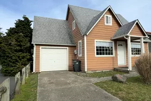 Charming cottage-style home in a convenient Hwy 101 location with easy front parking and additional alley access behind for more cars or RV parking. This inviting two-story, 1,168 sq ft home offers 2 bedrooms and 1 bath, featuring a galley kitchen with solid countertop and natural wood cabinets. a separate dining area, and a dedicated laundry room. The comfortable living room is warmed by a cozy pellet stove, creating a welcoming space to relax.The primary bedroom and bathroom are located on the main level. Upstairs, you'll find an additional bedroom and a cozy sitting room, perfect for reading, relaxing, or creating a small office space. Unfinished attic area approximately 12x10 with a high ceiling offer extra storage or potential for future 2nd bath or future bedroom. The attached one-car garage runs the length of the home, providing excellent storage or workshop possibilities. Step outside to enjoy the spacious back deck overlooking the yard and parking area-ideal for outdoor gatherings or quiet evenings.Conveniently located just 1/4 mile to grocery and shopping, and approximately 1.5 miles to Bandon South Jetty Park beach access, this home offers comfort, character, and a great location.