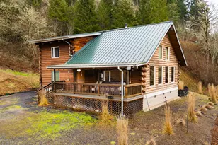 Beautiful 3bed/2.5bth log cabin with stunning valley views! Gorgeous shiplap woodwork and hardwood floors throughout. Cozy certified woodstove and energy-efficient heat pump for all season comfort. Main level primary bedroom plus bathroom w/ walk-in shower. Utility room includes bonus shower. All kitchen appliances included! Good sized detached workshop with concrete floors and power. Fenced yard, greenhouse, raised beds, and patio area. Additional 0.77 acre lot included in sale for a total of 1.45 acres. Only 40 mins to Eugene, 15 minutes to Umpqua River, and 1 hr to Oregon Coast! Call today to schedule your private tour!