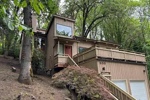 Truly a rare opportunity for the creative at heart. Live amongst the trees in this custom built try-level home. Features several solid wood lap accent walls, high open beam ceiling, solid brick wood burning fireplace, open lofts, benched window seating areas, double sinks and extra large 2 head shower in master bath w/ skylight. Garage has full width storage loft. Newly remodeled kitchen with high-end cabinets. New roof installed in 2020. Priced for quick as-is sale. Do not wait this one will go quickly.
