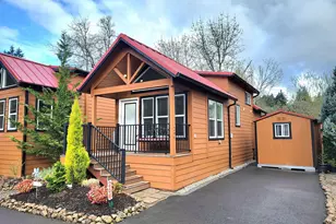 Escape to this peaceful gem backing Rogers Creek, where vaulted ceilings, granite countertops, and a custom coffee bar shine in a cozy, modern layout. Relax on dual decks or the paved patio, steps from the creek's soothing sounds. With vinyl plank flooring, a walk-in shower, shallow steps for easy access, and two storage sheds, it's built for comfort and convenience. Nestled in a vibrant community with a pool, walking trails, fishing lake, club house, fitness center and more. Park rent $992/mo. Includes W/S/G. Near I-5, wineries, and shopping. Don't Miss This Tiny Gem-Call Now!