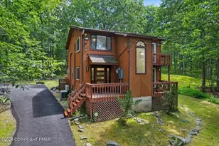 Experience Tranquility in the Heart of the Pocono Mountains 1289 Bear Drive | Pocono Ranchlands | 1.25 Private Acres Escape to peace and privacy at this contemporary mountain retreat nestled in the beautiful Pocono Mountains. Set on 1.25 acres, this charming home blends modern comforts with nature's serenity. Main Features: Spacious Living Room with striking beamed ceiling Modern Kitchen with granite countertops and stainless steel appliances Convenient Powder Room on the main floor 3 Comfortable Bedrooms upstairs Beautifully Tiled Full Bathroom with heated floors Step outside to your huge deck, perfect for relaxing, grilling, or simply watching the local wildlife pass by. Additional Upgrades & Amenities: Detached 2-car heated garage w/ 240V EV Charger Paved driveway Whole house generator Solar-powered attic fan for energy efficiency Split systems for heating and air conditioning Well-insulated crawl space Facing and adjacent to designated green-space Security system for peace of mind Located in amenity-filled Pocono Ranchlands, enjoy access to: Outdoor pool Horseback riding Skiing Clubhouse Year-round road maintenance 24/7 Security Nature lovers will appreciate being close to Bushkill Falls and miles of scenic hiking trails.