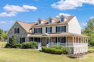 Nestled on just over an acre, this 4-bedroom, 2.5-bath home offers both spacious interiors and resort-style outdoor living. Step onto the wide wraparound Trex porch for morning coffee, then enjoy summer afternoons around the 35,000-gallon pool with slate & limestone waterfall, stamped concrete patio, and year-round Sundance hot tub. Inside, the two-story foyer welcomes you with hardwood floors and 9-ft ceilings. The main level includes a formal dining room, dedicated office, oversized powder room, and a large kitchen with island, tile flooring, and stainless appliances. The breakfast area opens to a dramatic two-story family room filled with natural light and anchored by a floor-to-ceiling stone fireplace. A versatile bonus room (game room), laundry, and garage access complete the first floor. Upstairs features four generously sized bedrooms including an expansive primary suite with walk-in closet, private bath, and sitting room with additional closets. A walk-up attic provides additional storage, while the basement with 9-ft poured walls and Bilco walk-out offers finishing potential. Additional highlights: 2.5-car epoxy-floored garage, newer HVAC systems, updated pool equipment, and new carpet. Conveniently located near trailheads, waterways, Skippack Village, and just a short drive to King of Prussia and Phoenixville.