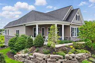 Who says you can't have it all? This luxurious home offers private views from your back deck and also an active 55+ community steps from your front porch. Enjoy your living room fireplace while creating meals in your gourmet kitchen...then dine at your large quartz island or in your breakfast room surrounded by windows. The kitchen features ceiling high cabinetry with quartz countertops, double oven, gas stove w pot filler and black SS appliances. The two-story living room ceiling with full walls of windows makes this space extraordinary. Step out to your deck for a view of the hills and pond. There are 2 bedrooms and 2 full baths on the main level including the owners' suite. The dining room is a large open flexible space. There is also an office and laundry room here. The lower level offers a game room, bedroom and full bath and steps out to the gorgeous patio. Out your front door is the community center with a fitness center and an outdoor heated pool. This home is a dream come true