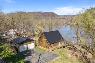 Truly one-of-a-kind log home situated directly on the river with unbeatable views and water access. Just a few years old, this custom-built retreat blends rustic charm with modern upgrades. Step inside to soaring ceilings, an open floorplan, and windows that frame the river from nearly every angle. The main level features a spacious living room, updated kitchen with stainless steel appliances and tons of cabinetry, open dining area, two bedrooms, full bath, and first-floor laundry. Upstairs, a cozy den and a stunning master suite with oversized windows, full bath, and walk-in closets overlook the water. The unfinished walk-out basement offers endless potential. Outside, enjoy panoramic views from the full wraparound deck, a detached two-car garage, and a beautifully landscaped yard. Tucked away for ultimate privacy, yet minutes to everything-this is the rare riverfront home you've been waiting for.